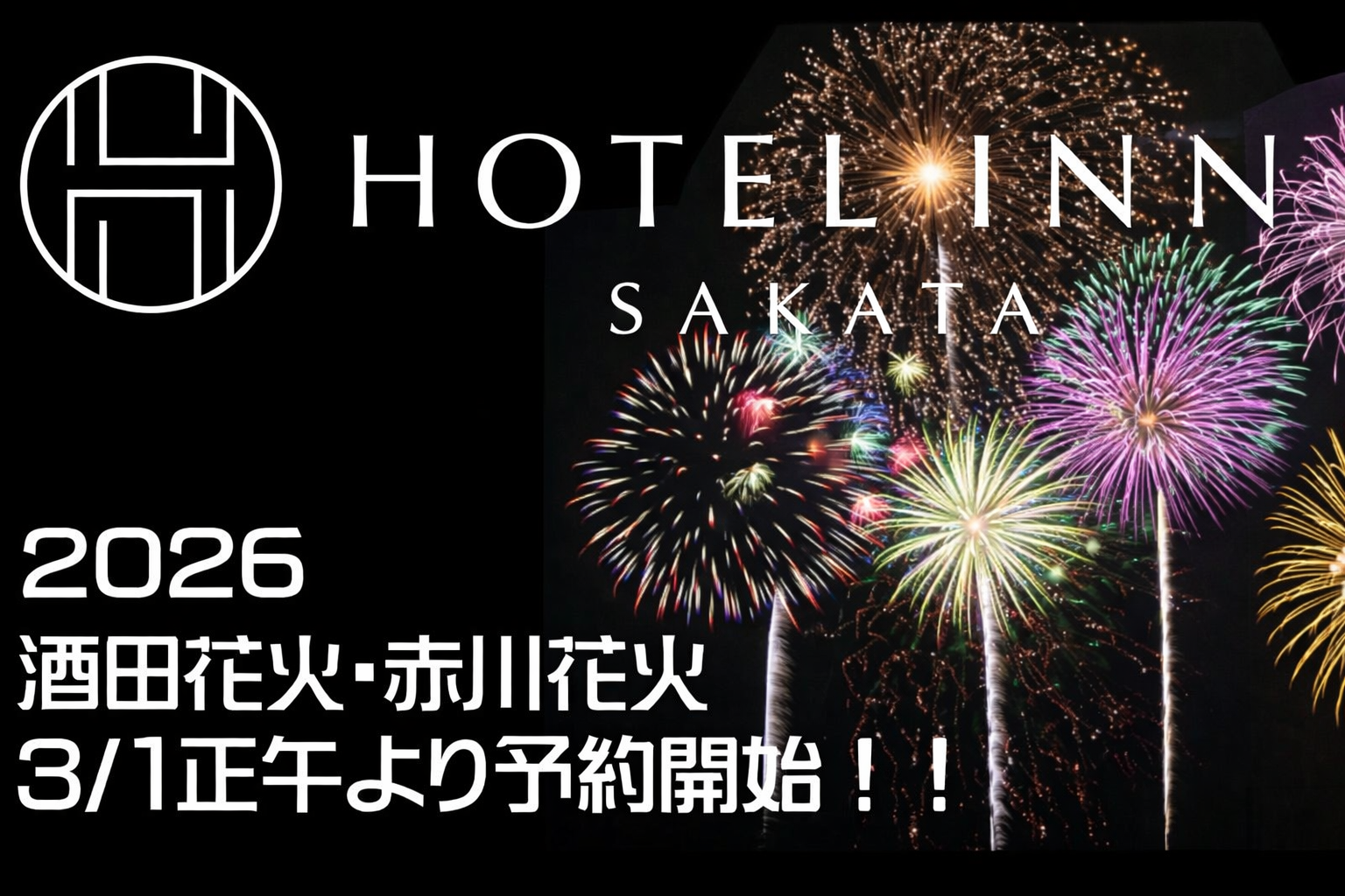 いつもホテルイン酒田をご利用頂き、ありがとうございます。2026年の酒田の花火、及び、赤川花火大会の予約開始の日程をご案内いたします。
